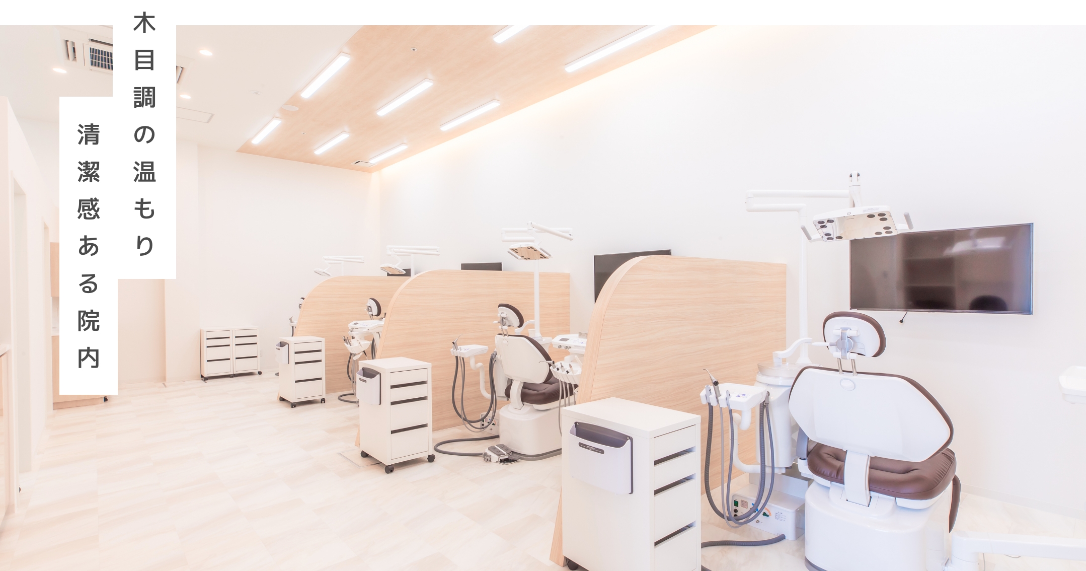 お越しいただいた皆さまに快適にお過ごしいただけるよう、シンプルかつ明るく清潔感のあるデザインの院内となっています。 スタッフ一同、いつでも明るい笑顔で皆さまをお待ちしています。 お口のお悩み、歯の治療に関するご相談などございましたらお気軽に受付にお声がけください。
